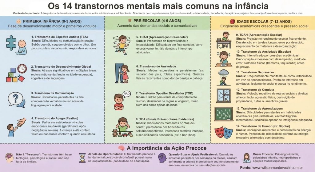 Vale ressaltar que esta lista contempla os transtornos mais prevalentes, mas não esgota todas as possibilidades diagnósticas da infância.